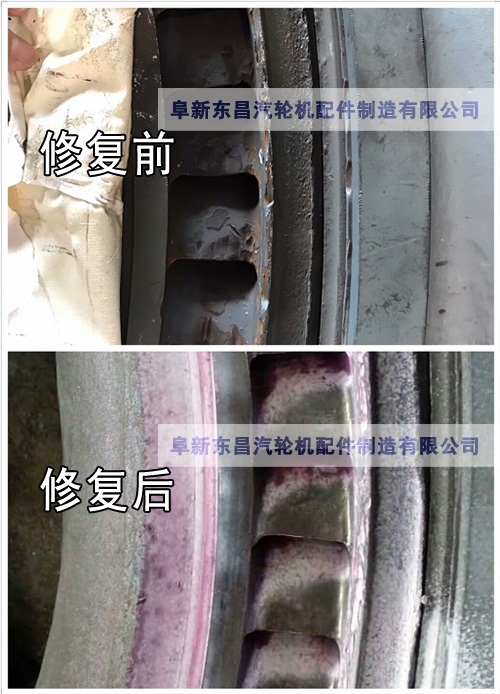 阜新東昌汽輪機配件制造有限公司高壓隔板噴嘴、靜葉片,修復前和修復后的對比圖。